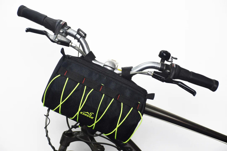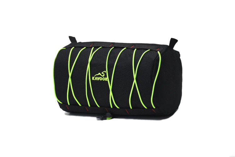 کیف جلو فرمان دارای کش جلو برای پوشاک و حجم بیشتر بدنه ضد آب فریم داخلی و آستر دار مناسب دوچرخه و موتور تسمه های اتصال و اتصال در سه نقطه